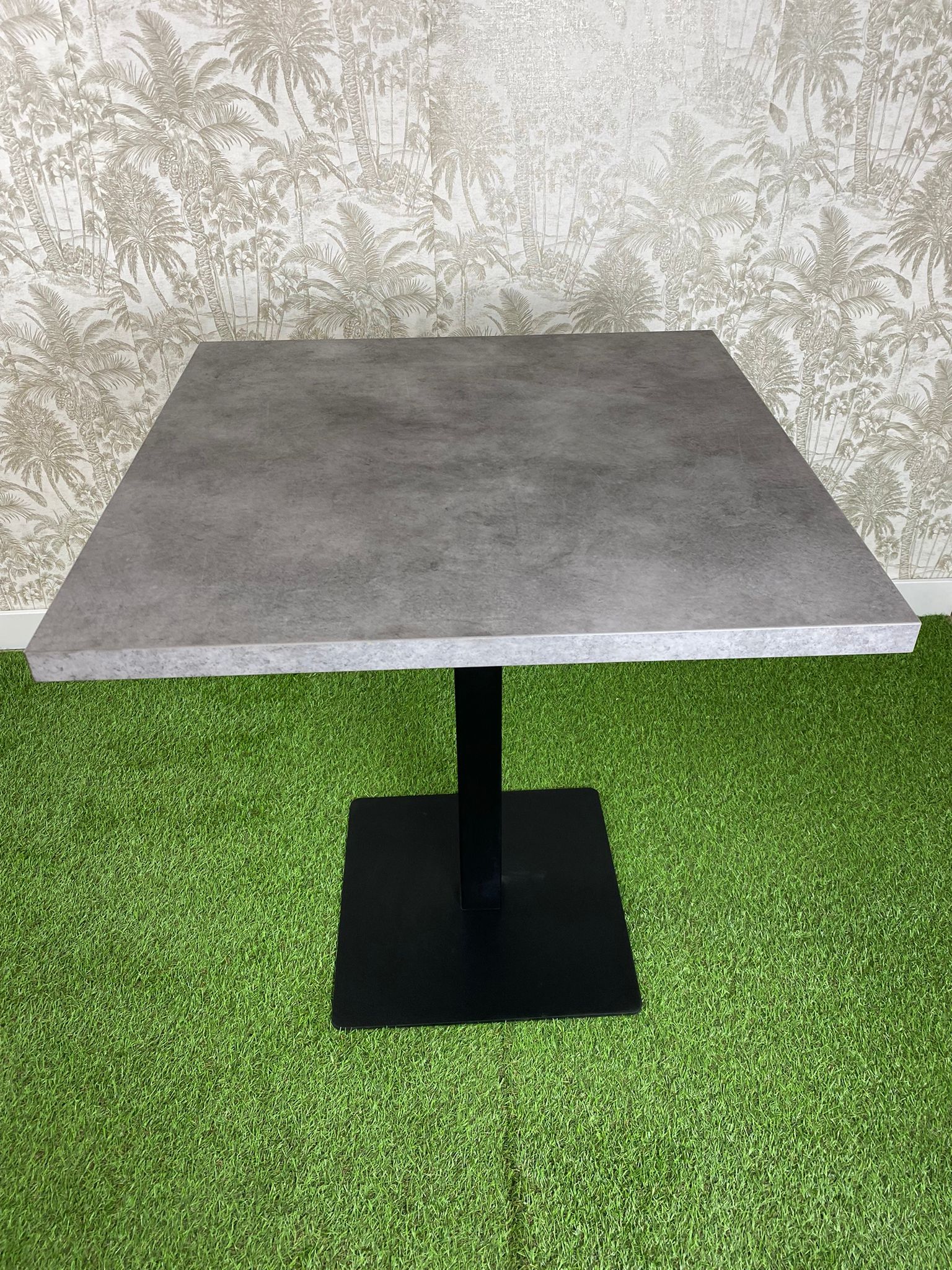 Base de mesa con la chapa inferior de 42.5cm x 42.5 cm x 0.6 cm de grosor, en la parte que apoya el suelo tiene unos tacos de silicona anti deslizantes y hace que la mesa no se tambalee, el tubo es de 6 cm x 6 cm y la base superior de 25 cm x 25 cm x 0,5 cm de grosoro, el color puede ser en negro, dorado o en color óxido.