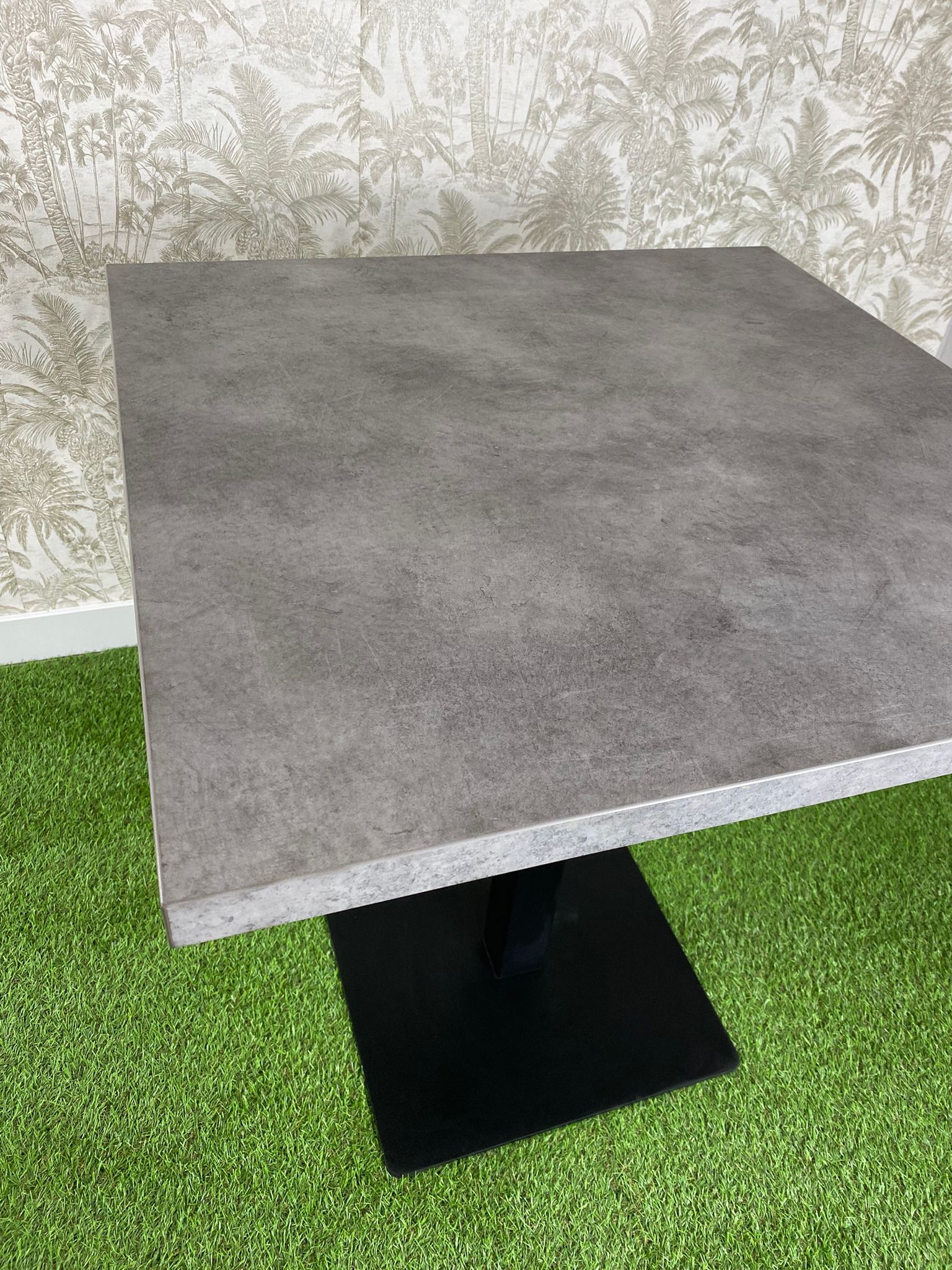 Características: Tablero de melamina de 3 cms de grosor, también disponible en 1.9cm de grosor (90€ mesa completa), el diseño es estilo industrial en color gris simulando en aspecto y tacto al cemento. Disponible en cualquier medida.