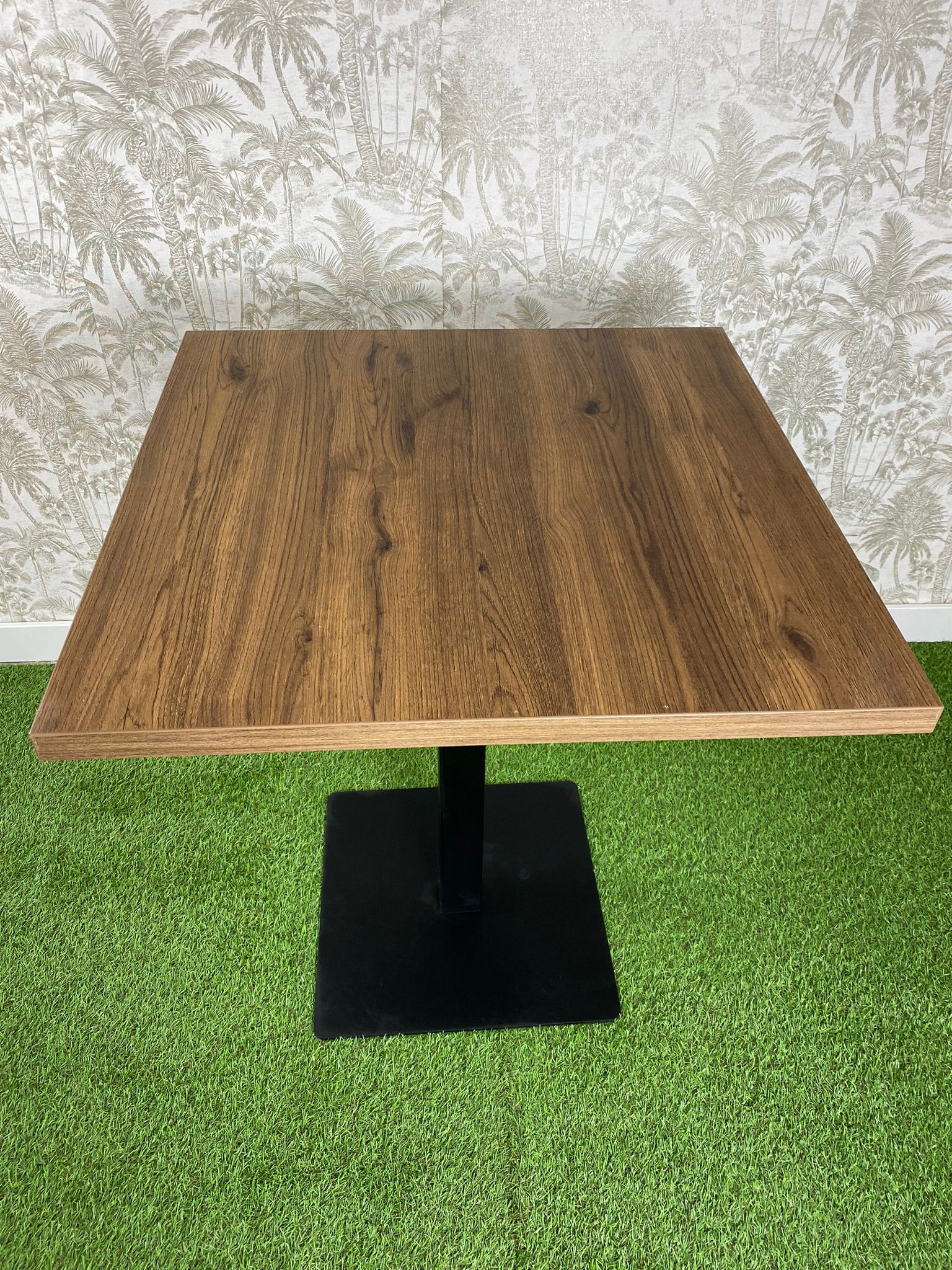 Base de mesa con la chapa inferior de 42.5cm x 42.5 cm x 0.6 cm de grosor, en la parte que apoya el suelo tiene unos tacos de silicona anti deslizantes y hace que la mesa no se tambalee, el tubo es de 6 cm x 6 cm y la base superior de 25 cm x 25 cm x 0,5 cm de grosoro, el color puede ser en negro, dorado o en color óxido.